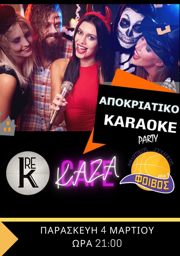 Σας προσκαλούμε σε ένα μοναδικό αποκριάτικο ξεφάντωμα με πολύ μουσική και καραόκε, ένα απαραίτητο διάλλειμα χαράς, γέλιου και διασκέδασης για όλους μας.