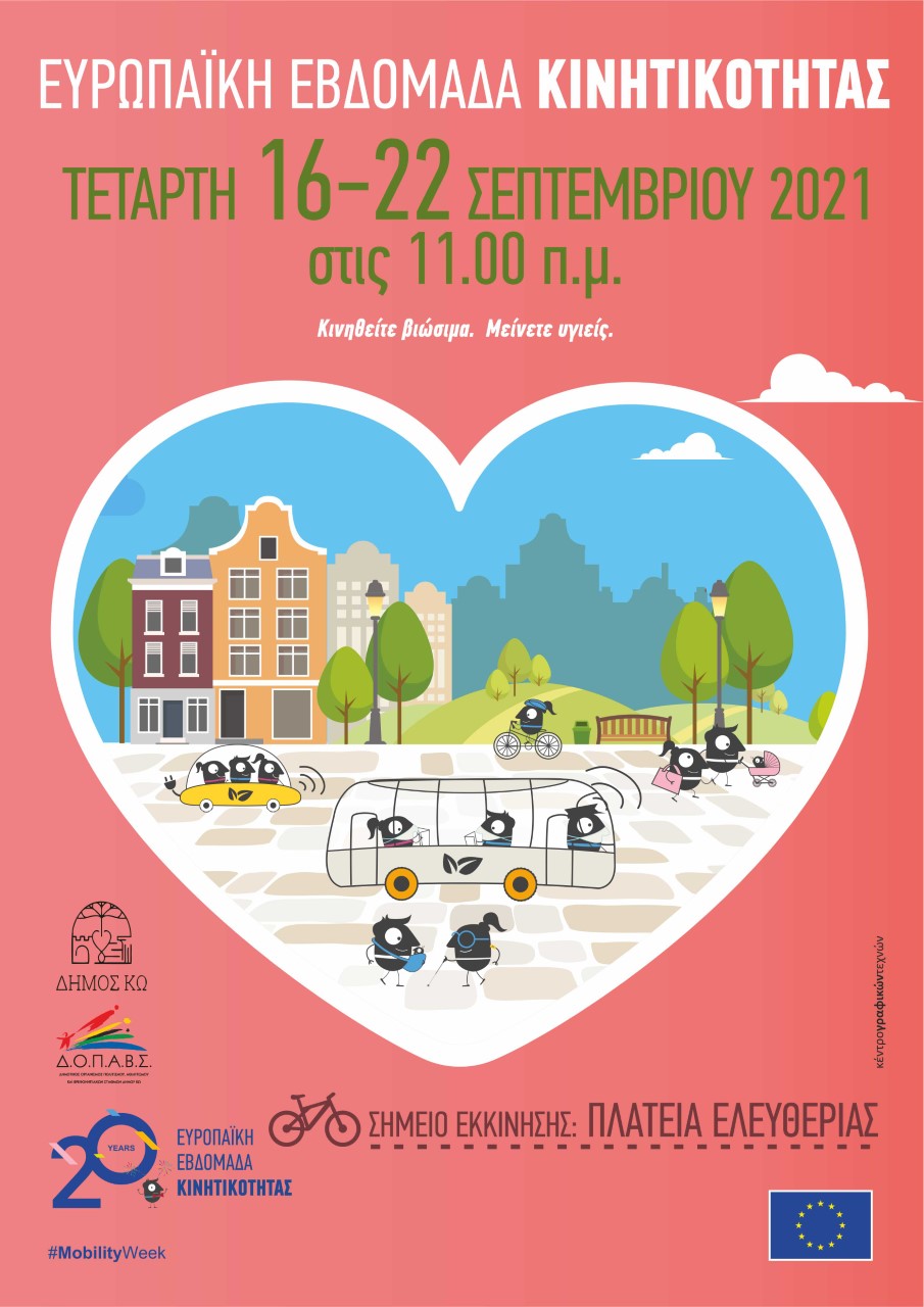 Η εβδομάδα 18-22 Σεπτεμβρίου 2021 , έχει οριστεί ως «ΕΥΡΩΠΑΙΚΗ ΕΒΔΟΜΑΔΑ ΚΙΝΗΤΙΚΟΤΗΤΑΣ». Το θέμα που επιλέχθηκε για το 2021 είναι « Είμαστε Υγιείς και Ασφαλείς με τη Βιώσιμη Κινητικότητα» .