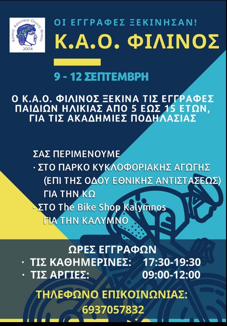 Ξεκίνησαν οι εγγραφές στο ποδηλατικό τμήμα του ΦΙΛΙΝΟΥ