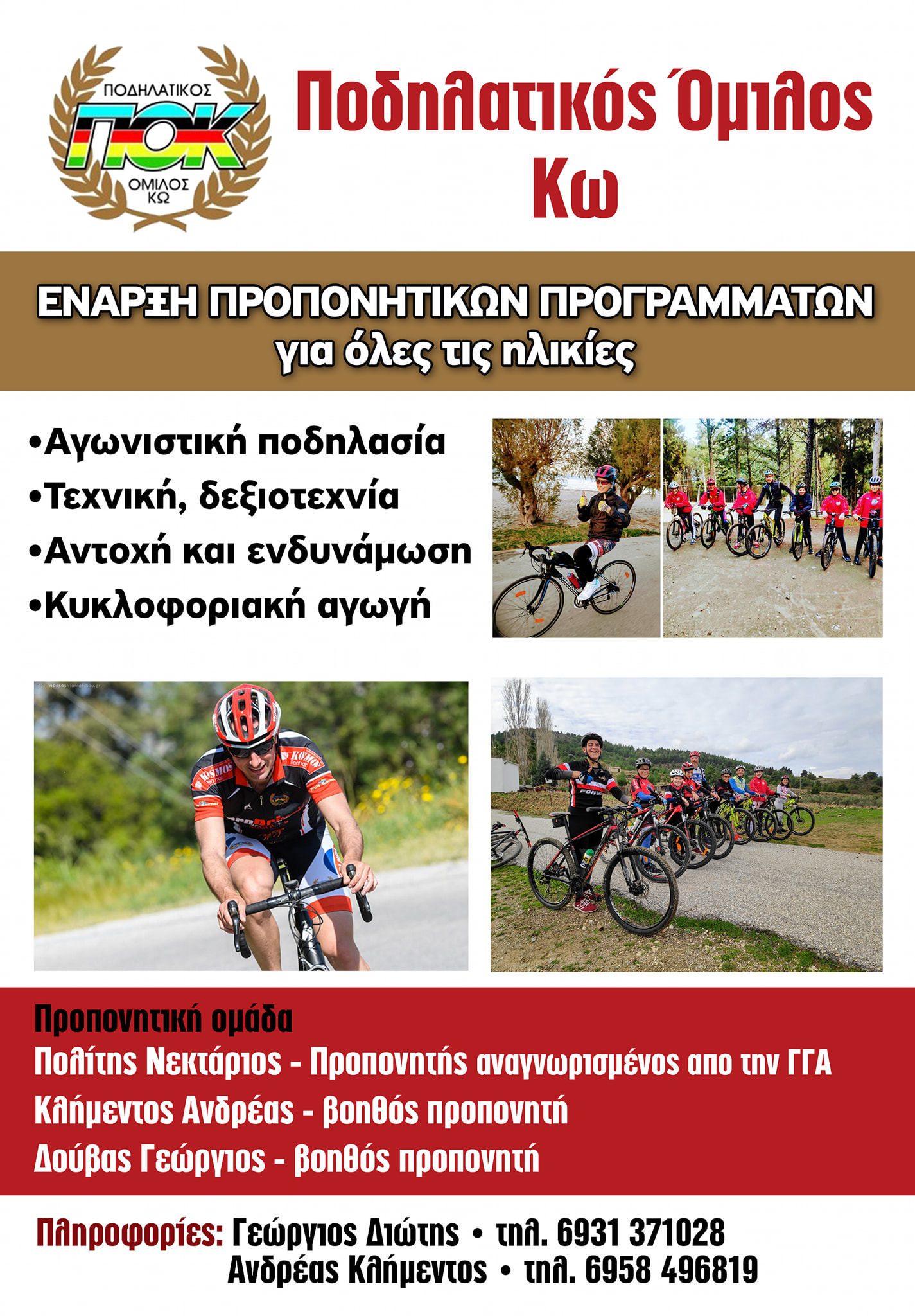 ΠΟΔΗΛΑΤΙΚΟΣ ΟΜΙΛΟΣ ΚΩ: ΕΝΑΡΞΗ ΠΡΟΠΟΝΗΤΙΚΩΝ ΠΡΟΓΡΑΜΜΑΤΩΝ ΓΙΑ ΟΛΕΣ ΤΙΣ ΗΛΙΚΙΕΣ