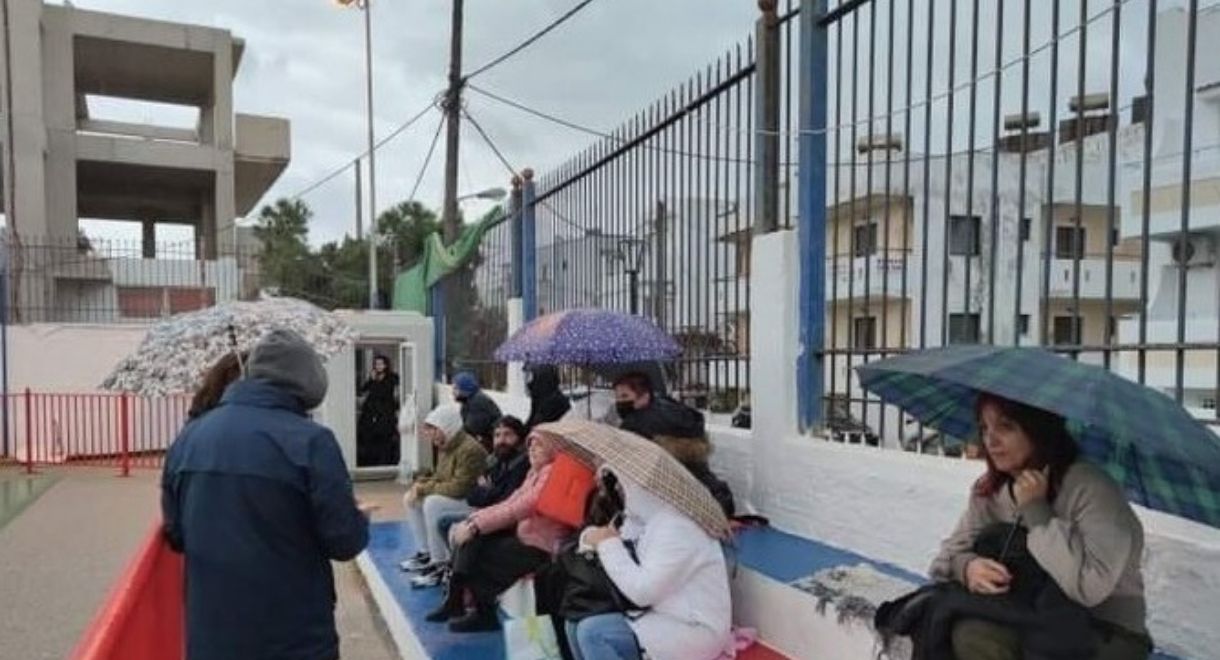 *Φωτογραφία από την ώρα της διακοπής του αγώνα στο ανοιχτό γήπεδο της Καρδάμαινας στην Κω