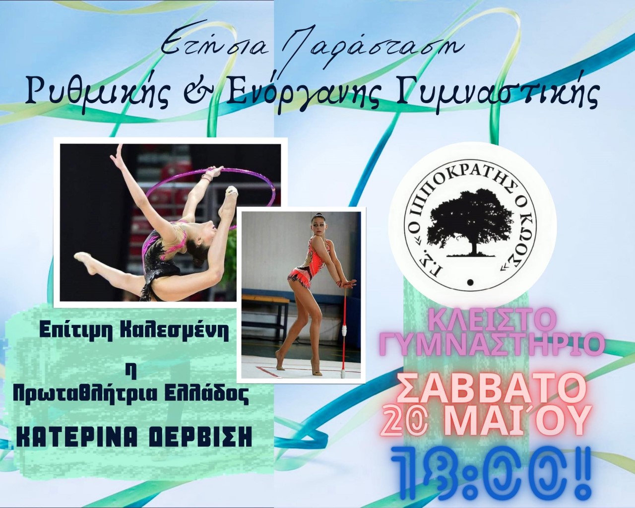 20/5 η ετήσια παράσταση ρυθμικής & ενόργανης γυμναστικής του ΓΣ "Ιπποκράτης ο Κώος"