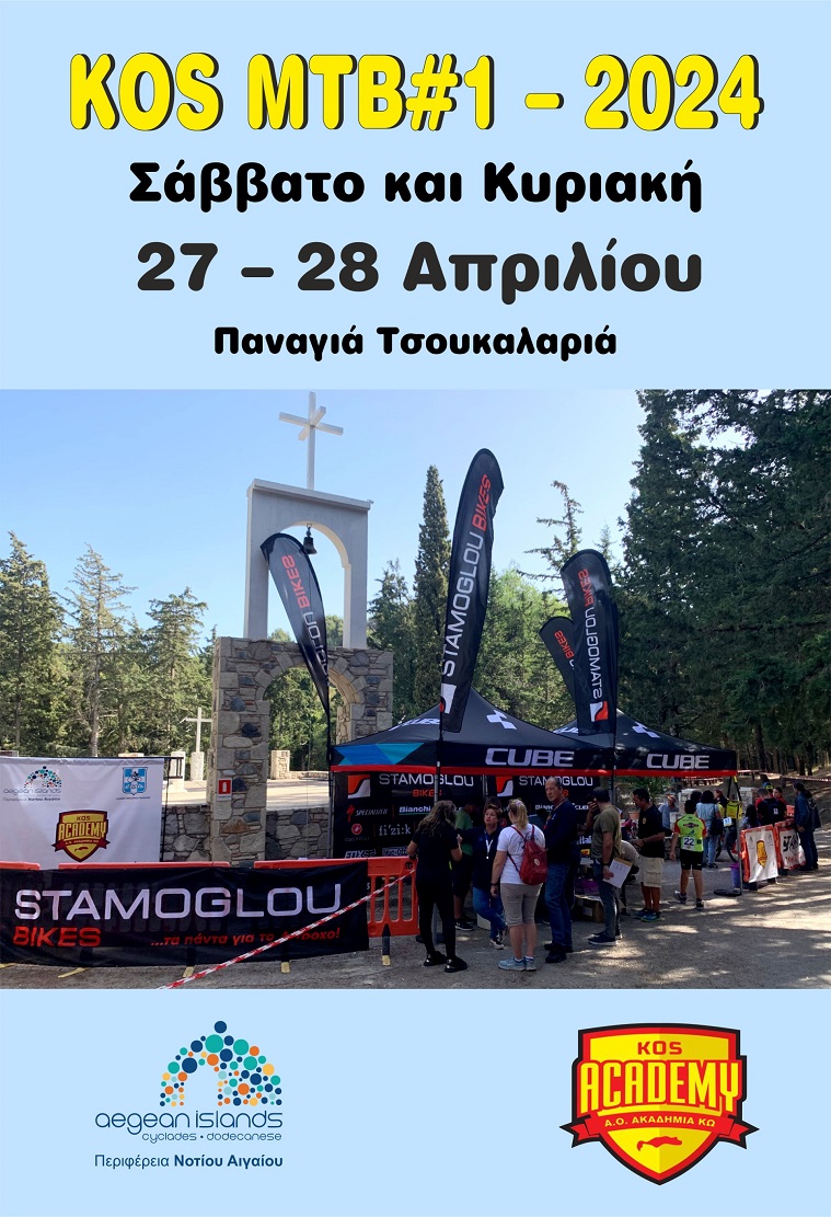Ο Αθλητικός Όμιλος Ακαδημία Κω, το Σάββατο 27 και την Κυριακή 28 Απριλίου, διοργανώνει διασυλλογικό αγώνα ορεινής ποδηλασίας με τη στήριξη της Περιφέρειας Νοτίου Αιγαίου, με την επωνυμία «KOSMTB#1 - 2024», στην περιοχή της Παναγιάς Τσουκαλαριάς.