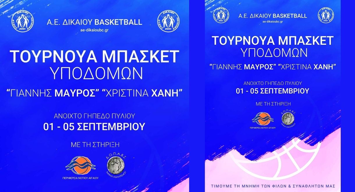 Όπως κάθε χρόνο έτσι και φέτος η Α.Ε Δικαίου τιμώντας την μνήμη του Γιάννη Μαύρου και της Χριστίνας Χανή που τόσο άδικα έφυγαν απ' την ζωή διοργανώνει κοινό τουρνουά στο ανοιχτό γήπεδο Πυλίου, με την στήριξη του ΔΟΠΑΒΣ Κω και της Περιφέρειας Νοτίου Αιγαίου.