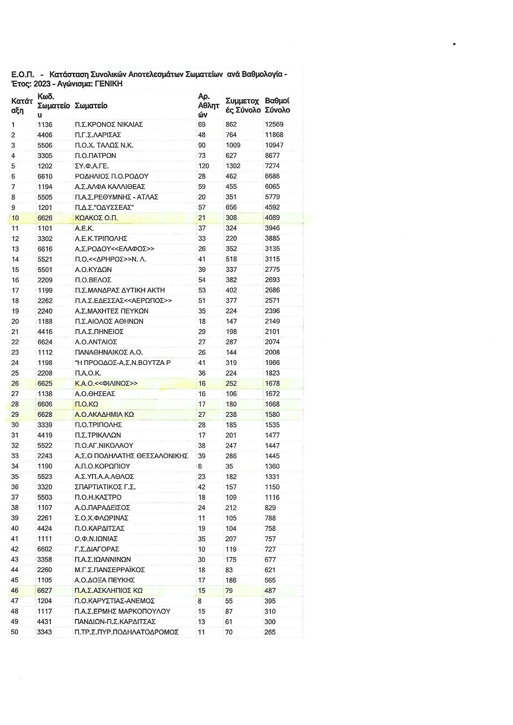 Ο σύλλογός μας τερμάτισε στην 26η θέση σε όλη την Ελλάδα επί συνόλου 79 σωματείων