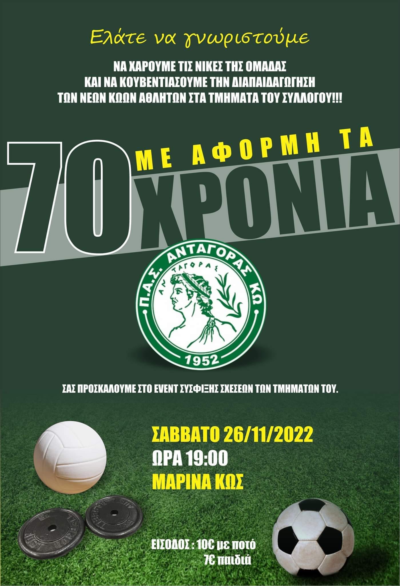 Εκδήλωση του Ανταγόρα με αφορμή τα 70 χρόνια του
