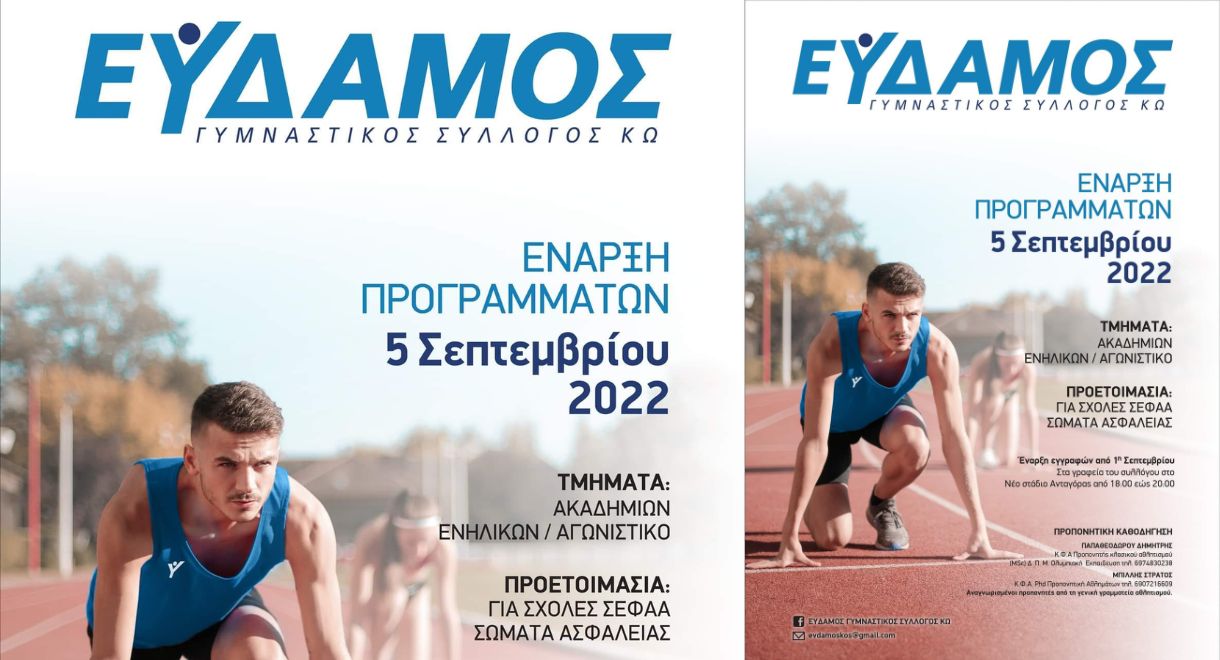 Από 1η Σεπτεμβρίου ξεκινούν και επίσημα οι εγγραφές στον Εύδαμο για τη νέα χρονιά ενώ οι προπονήσεις θα ξεκινήσουν απ’ τις 5 Σεπτεμβρίου στο Νέο στάδιο Ανταγόρας