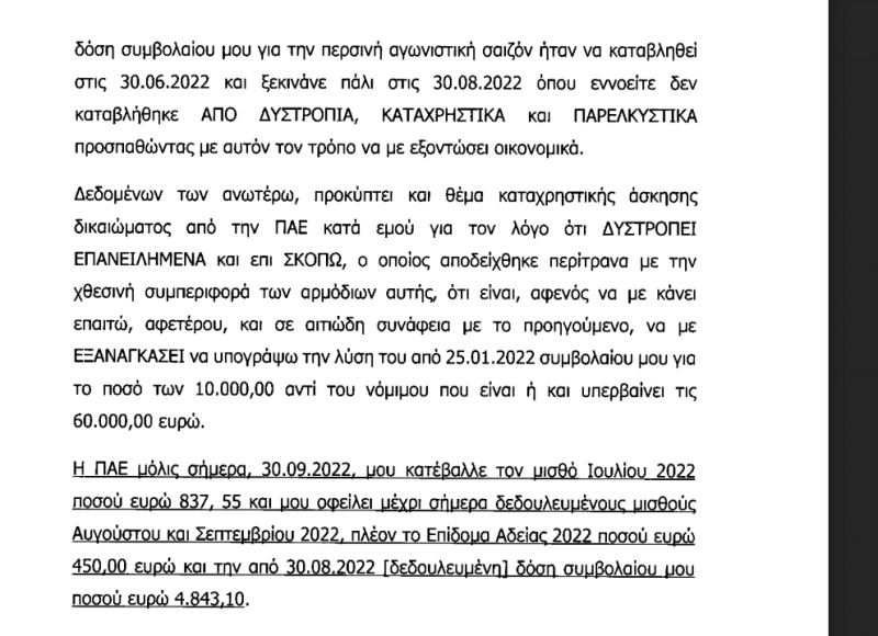Επομένως δεν μπορώ να συνεχίσω μια συμβατική σχέση με απειλές, εκβιασμούς και ωμή βία», αναφέρεται μεταξύ άλλων στην καταγγελία, την οποία σας αποκαλύπτουμε: