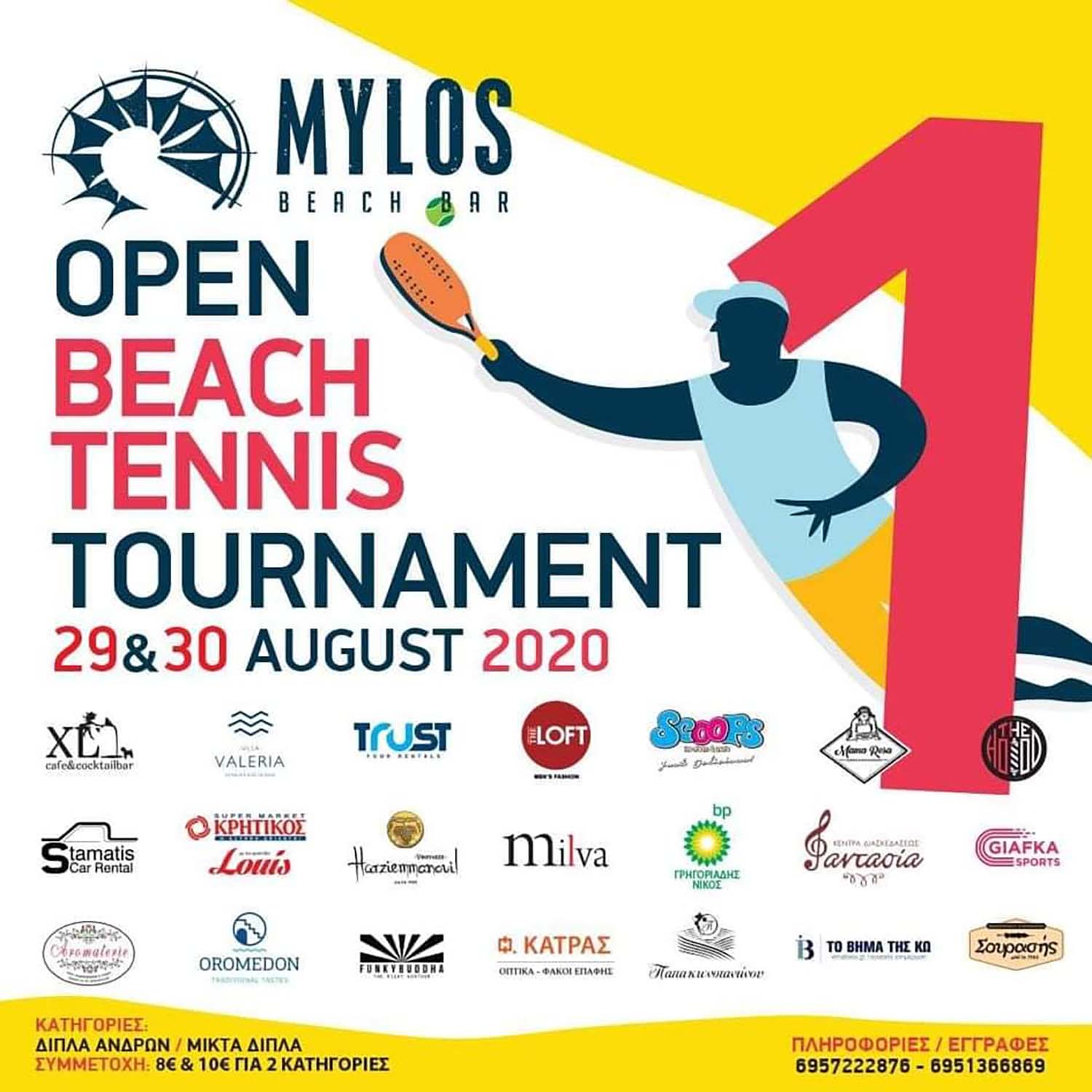 Την ευκαιρία να παρακολουθήσουν αλλά και να αγωνιστούν στο OPEN BEACH TENNIS TOURNAMENT, θα έχουν όσοι βρεθούν στο “Mylos beach Bar” στις 29-30 Αυγούστου.
