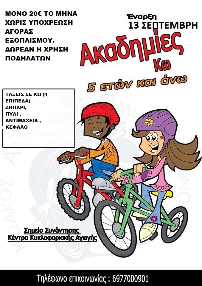 Για παιδιά απο 4-17 ετών με βοηθητικές και χωρίς αλλά και για ενήλικες που θέλουν να μάθουν ποδήλατο ή για κυρίες που θέλουν να συμμετάσχουν στη γυναικεία ομάδα μας