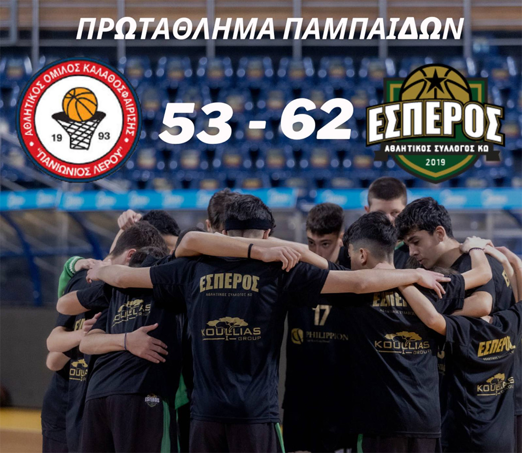 Κερδίζοντας τον Πανιώνιο Λέρου στο κλειστό γυμναστήριο της Μερικιας 53-62 στην παράταση, οι αθλητές μας εξασφάλισαν την πρωτιά ανεξάρτητα από το αποτέλεσμα του αγώνα με τον Ξάνθο στην Πάτμο.