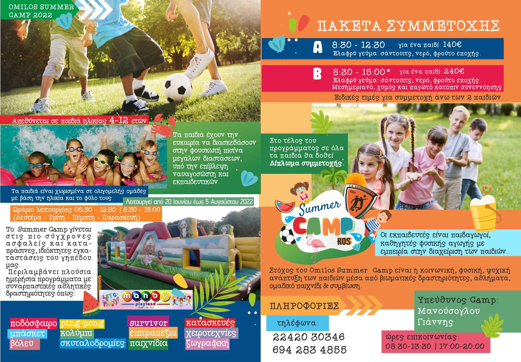 Για ακόμη μια χρονιά ο Α.Ο Αθλοπαιδιών Κω και ο Γιάννης Μανούσογλοι πιστοί στο ραντεβού τους διοργανώνουν το καλοκαιρινό καμπ που θα γίνει στις εγκαταστάσεις του συλλόγου με ακόμα περισσότερες επιλογές για τα παιδιά.
