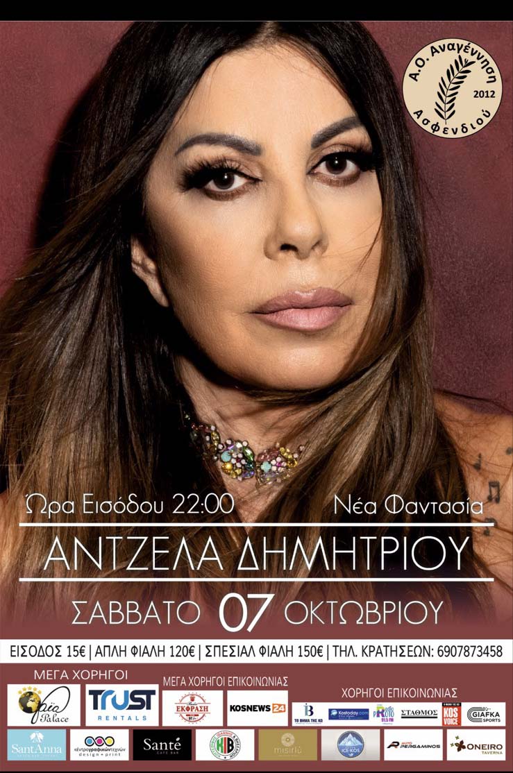 Το Σάββατο 7 Οκτωβρίου η «Λαίδη» του λαϊκού τραγουδιού, Άντζελα Δημητρίου θα μας χαρίσει, στη Νέα Φαντασία, μια μοναδική βραδιά γεμάτη διασκέδαση και κέφι μέχρι το πρωί.
