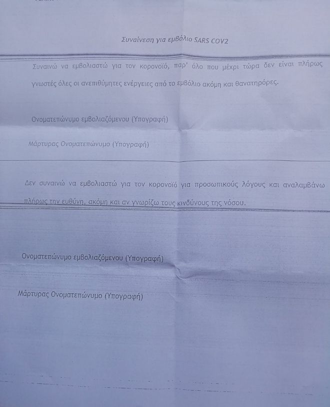 Το θέμα έκανε γνωστό λίγο νωρίτερα ο πρόεδρος της ΠΟΕΔΗΝ, κ. Γιαννάκος, ο οποίος ανέφερε ότι "στο Νοσοκομείο Καρδίτσας, σήμερα που πήγε να εμβολιαστεί το υγειονομικό προσωπικό τους μοίρασαν δήλωση που θα πρέπει να υπογράψουν ότι συναινούν στον εμβολιασμό, παρ' όλο που μέχρι τώρα δεν είναι γνωστές όλες οι ανεπιθύμητες ενέργειες από το εμβόλιο ακόμη και θανατηφόρες. Στο ίδιο έντυπο θα πρέπει να υπογράψουν όσοι συνάδελφοι δεν συναινούν στον εμβολιασμό για προσωπικούς λόγους και αναλαμβάνουν πλήρως την ευθύνη".