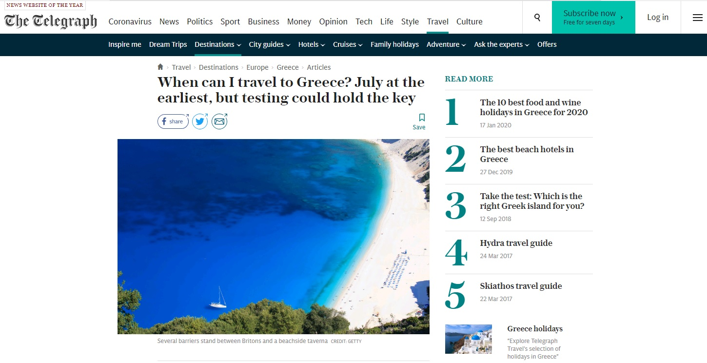 Telegraph: «Πότε θα μπορέσουμε να ταξιδέψουμε στην Ελλάδα;»