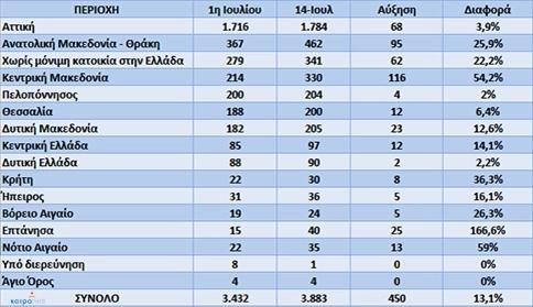 Πώς διαφοροποιήθηκαν τα δεδομένα μετά την 1η Ιουλίου οπότε και άνοιξαν τα σύνορα της Ελλάδας για πτήσεις του εξωτερικού. Πού καταγράφεται μεγάλη αύξηση στα κρούσματα, ποιες περιοχές έχουν την πρωτιά σε απόλυτους αριθμούς. Αναλυτικός πίνακας.