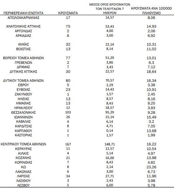 Σήμερα ανακοινώθηκαν 1.112 κρούσματα, 34 θάνατοι, 445 διασωληνωμένοι - Διενεργήθηκαν συνολικά 47.808 τεστ και ο δείκτης θετικότητας είναι στο 2,32%.