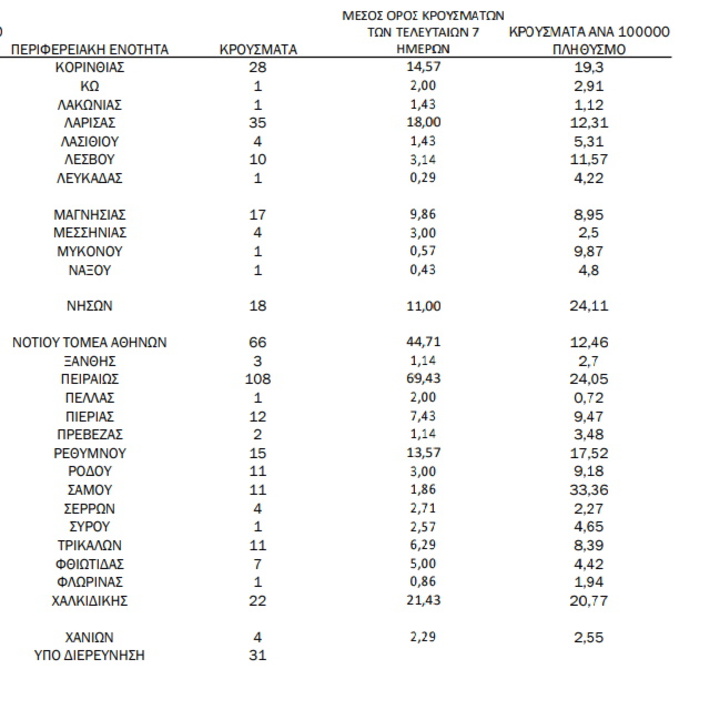θεωρούνται σχετιζόμενα με ταξίδι από το εξωτερικό και 1.921 είναι σχετιζόμενα με ήδη γνωστό κρούσμα.