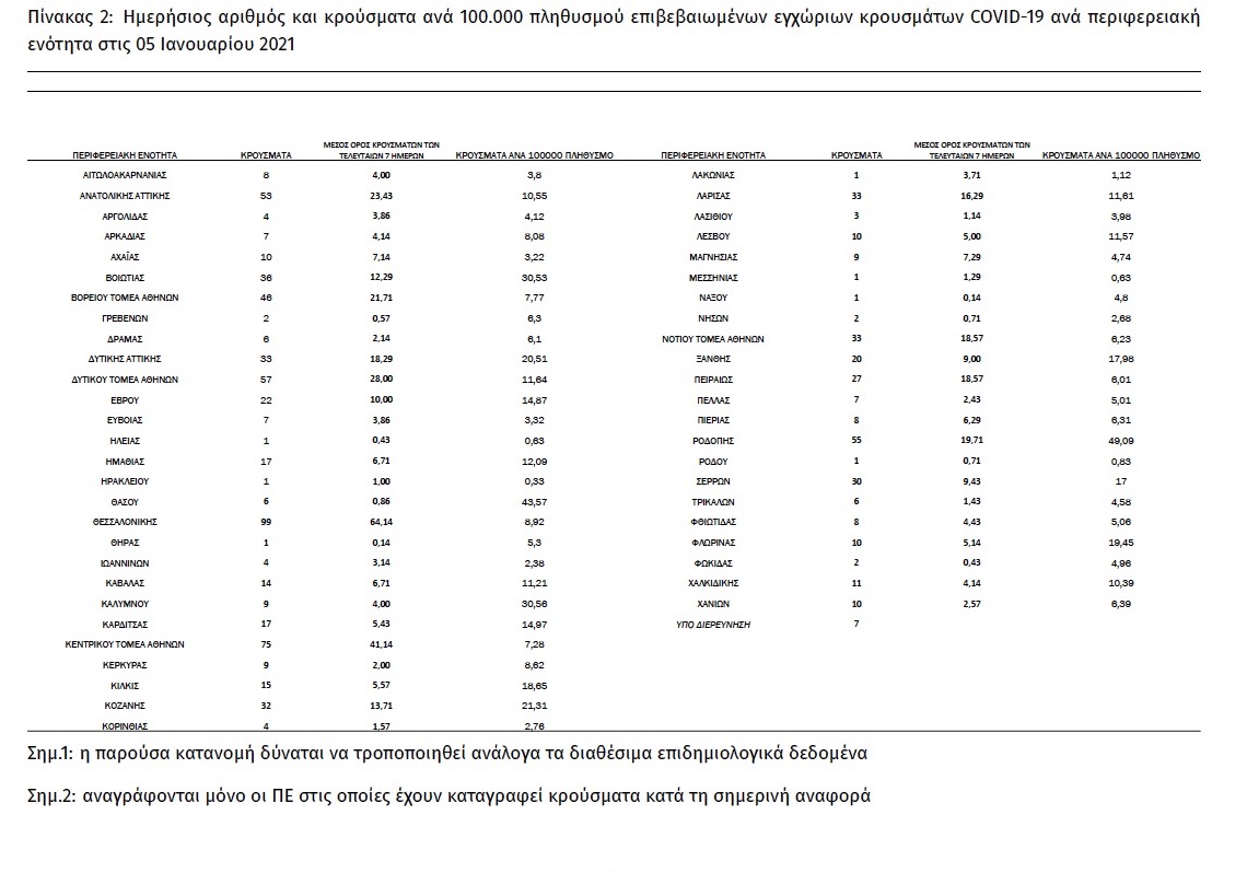 Τέλος, έχουμε 40 νέους θανάτους από τη νόσο COVID-19, φθάνοντας τους 5051 θανάτους συνολικά στη χώρα, εκ των οποίων 2999 (59.4%) άνδρες. Η διάμεση ηλικία των θανόντων συμπολιτών μας ήταν τα 79 έτη και το 95.4% είχε κάποιο υποκείμενο νόσημα ή/και ηλικία 70 ετών και άνω.