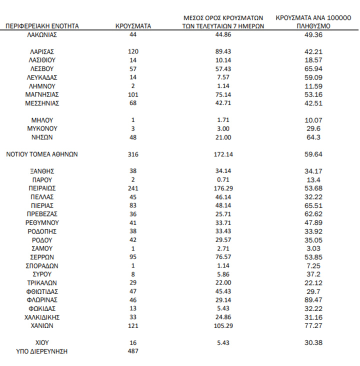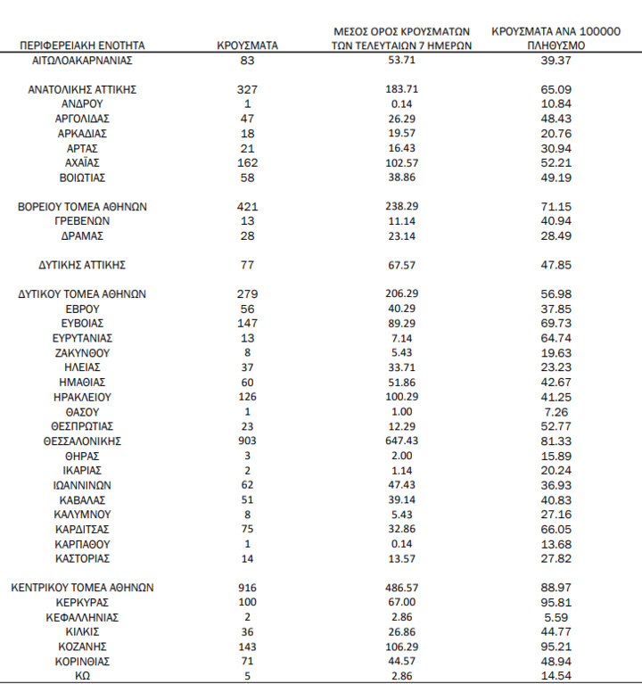 Με βάση τα επιβεβαιωμένα κρούσματα των τελευταίων 7 ημερών, 196 θεωρούνται σχετιζόμενα με ταξίδι από το εξωτερικό και 2.739 είναι σχετιζόμενα με ήδη γνωστό κρούσμα.