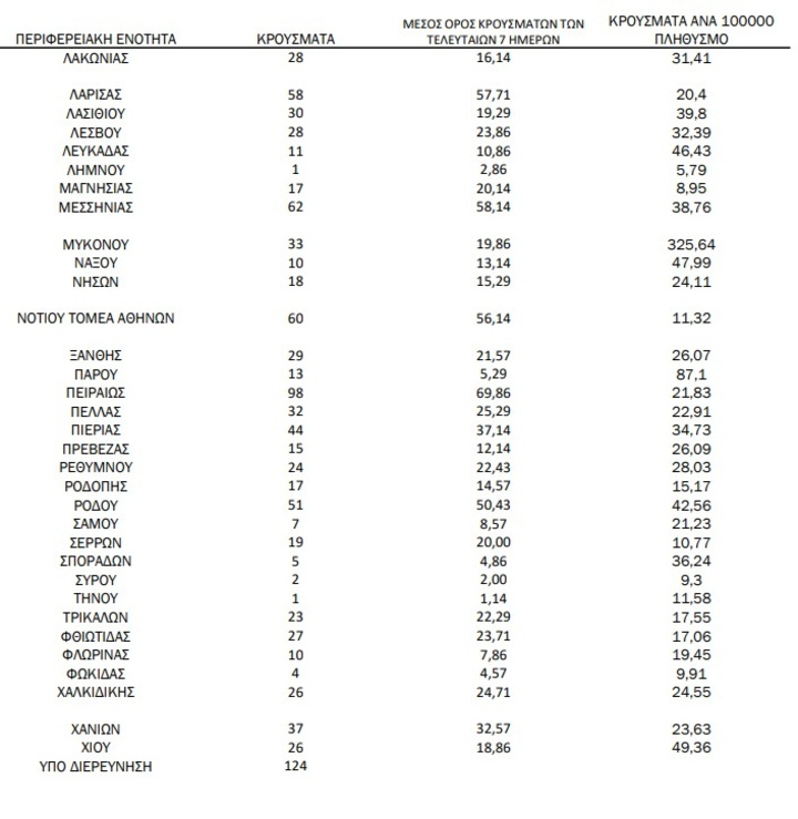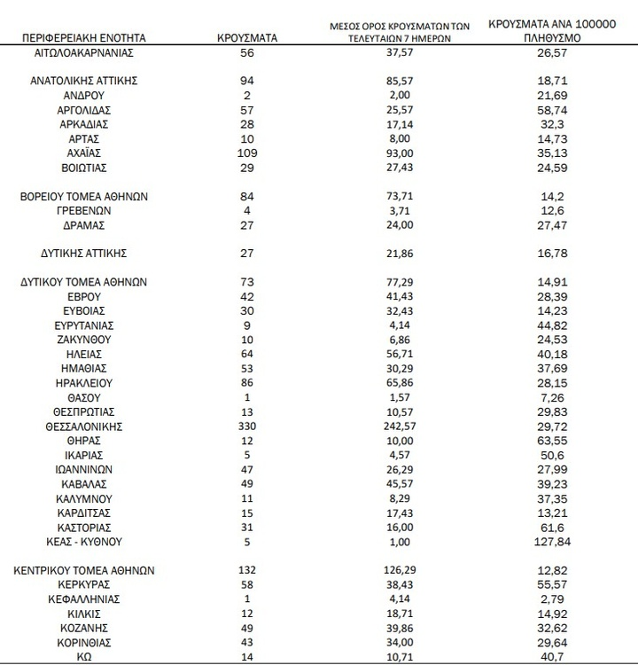 Με βάση τα επιβεβαιωμένα κρούσματα των τελευταίων 7 ημερών, 164 θεωρούνται σχετιζόμενα με ταξίδι από το εξωτερικό και 1.478 είναι σχετιζόμενα με ήδη γνωστό κρούσμα.