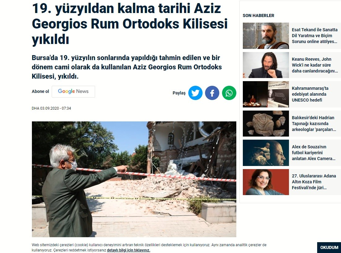 Στην κατεδάφιση του ορθόδοξου ναού του Αγίου Γεωργίου στην Προύσα, γνωστού και ως η «Αγιά Σοφιά της Μπούρσα», προχώρησαν το βράδυ της Τετάρτης οι τουρκικές αρχές.