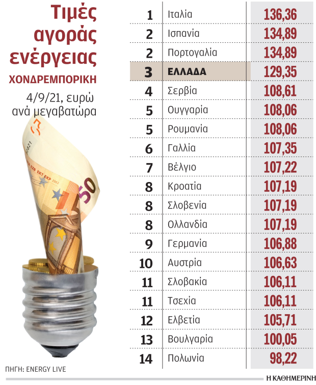 Η πλευρά της αγοράς συμμερίζεται τις πιέσεις που ασκούνται σε νοικοκυριά και επιχειρήσεις από τις πολύ υψηλές τιμές ρεύματος στο σύνολό της, ωστόσο εκτιμά ότι δεν υπάρχει κανένα περιθώριο απορρόφησης του υπέρογκου κόστους της χονδρεμπορικής αγοράς που διαμορφώνει τους τελευταίους μήνες το παράλληλο ράλι της τιμής των ρύπων CO2 και του φυσικού αερίου. Αυτό που θα πρέπει να γίνει, όπως τονίζουν στελέχη των ιδιωτικών εταιρειών αλλά και της ΔΕΗ στην «Κ», είναι η κυβέρνηση να αναζητήσει τρόπους ελάφρυνσης του λογαριασμού ρεύματος παρεμβαίνοντας στο μη ανταγωνιστικό σκέλος, το οποίο αντιπροσωπεύει μόλις το ένα τρίτο του συνόλου. Δείχνουν συγκεκριμένα τη φορολογία, παραπέμποντας και στο παράδειγμα της Ισπανίας, η οποία προκειμένου να μετριάσει τις επιβαρύνσεις για τους καταναλωτές προχώρησε σε προσωρινή μείωση του ΦΠΑ στην ενέργεια αλλά και το ΕΤΜΕΑΡ, παραπέμποντας στην απόφαση Χατζηδάκη το φθινόπωρο του 2019 να συνδυάσει την αύξηση των τιμολογίων της ΔΕΗ με τη μείωση της σχετικής χρέωσης για νοικοκυριά και μικρές επιχειρήσεις, εξουδετερώνοντας με τον τρόπο αυτό την όποια επιβάρυνση θα προέκυπτε. Οπως υποστηρίζουν, η άνοδος της χονδρεμπορικής τιμής ρεύματος δημιουργεί πλεονάσματα στον λογαριασμό ΕΛΑΠΕ που θα μπορούσαν να χρησιμοποιηθούν για κάποιους μήνες για την επιδότηση των καταναλωτών. Μάλιστα, σχετική πρόταση έχει υποβληθεί από κάποιες εταιρείες προμήθειας στην πολιτική ηγεσία του υπουργείου Περιβάλλοντος και Ενέργειας και στη ΡΑΕ. Η επιφυλακτικότητα που εκφράζεται από πλευράς της αρμόδιας αρχής ως προς το να «μπει χέρι» στα πλεονάσματα του ΕΛΑΠΕ, είναι ότι δεν έχουν σταθεροποιηθεί για μεγάλο χρονικό διάστημα.