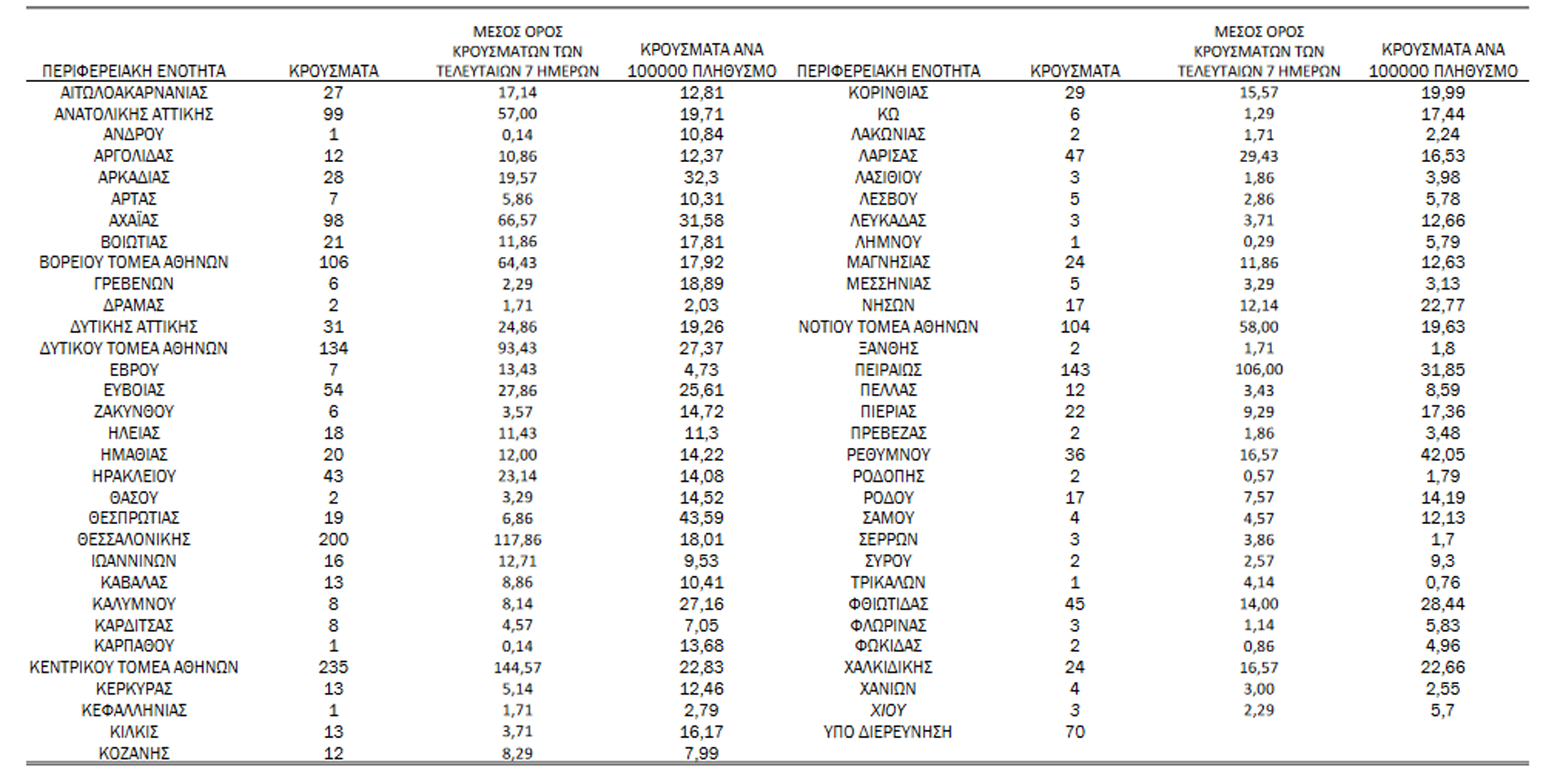 Δείτε ΕΔΩτην ημερήσια έκθεση επιδημιολογικής επιτήρησης λοίμωξης από τον κορονοϊό