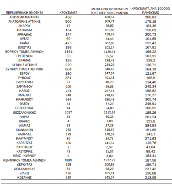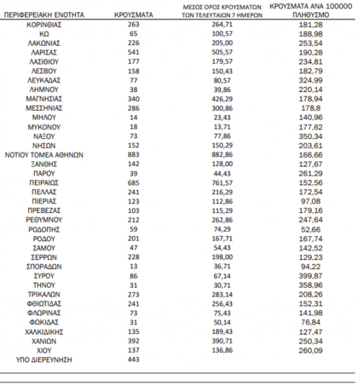 Τα νέα εργαστηριακά επιβεβαιωμένα κρούσματα της νόσου που καταγράφηκαν τις τελευταίες 24 ώρες