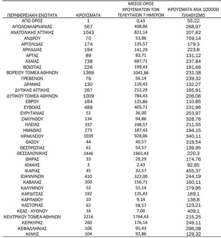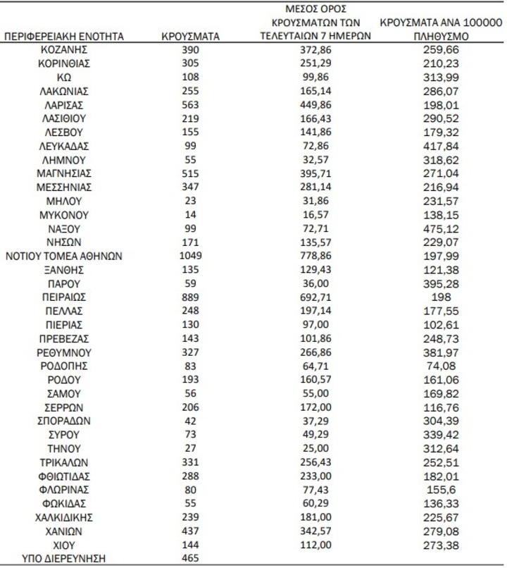 Με βάση τα επιβεβαιωμένα κρούσματα των τελευταίων 7 ημερών, 211 θεωρούνται σχετιζόμενα με ταξίδι από το εξωτερικό και 1.564 είναι σχετιζόμενα με ήδη γνωστό κρούσμα.