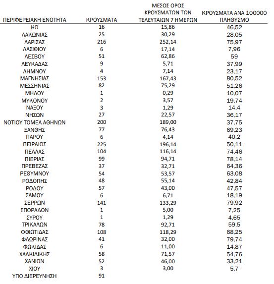 Αναλυτικά η διασπορά των νέων κρουσμάτων σήμερα στην υπόλοιπη Ελλάδα