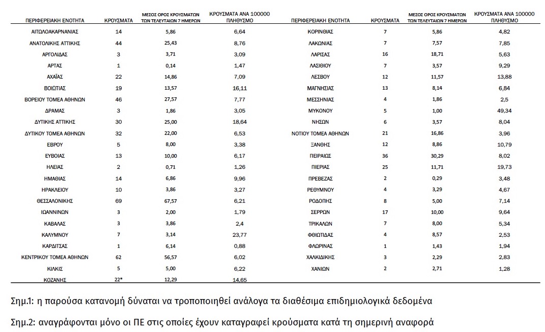 Τέλος, έχουμε 25 νέους θανάτους από τη νόσο COVID-19, φθάνοντας τους 5354 θανάτους συνολικά στη χώρα, εκ των οποίων 3161 (59.0%) άνδρες. Η διάμεση ηλικία των θανόντων συμπολιτών μας ήταν τα 79 έτη και το 95.5% είχε κάποιο υποκείμενο νόσημα ή/και ηλικία 70 ετών και άνω.