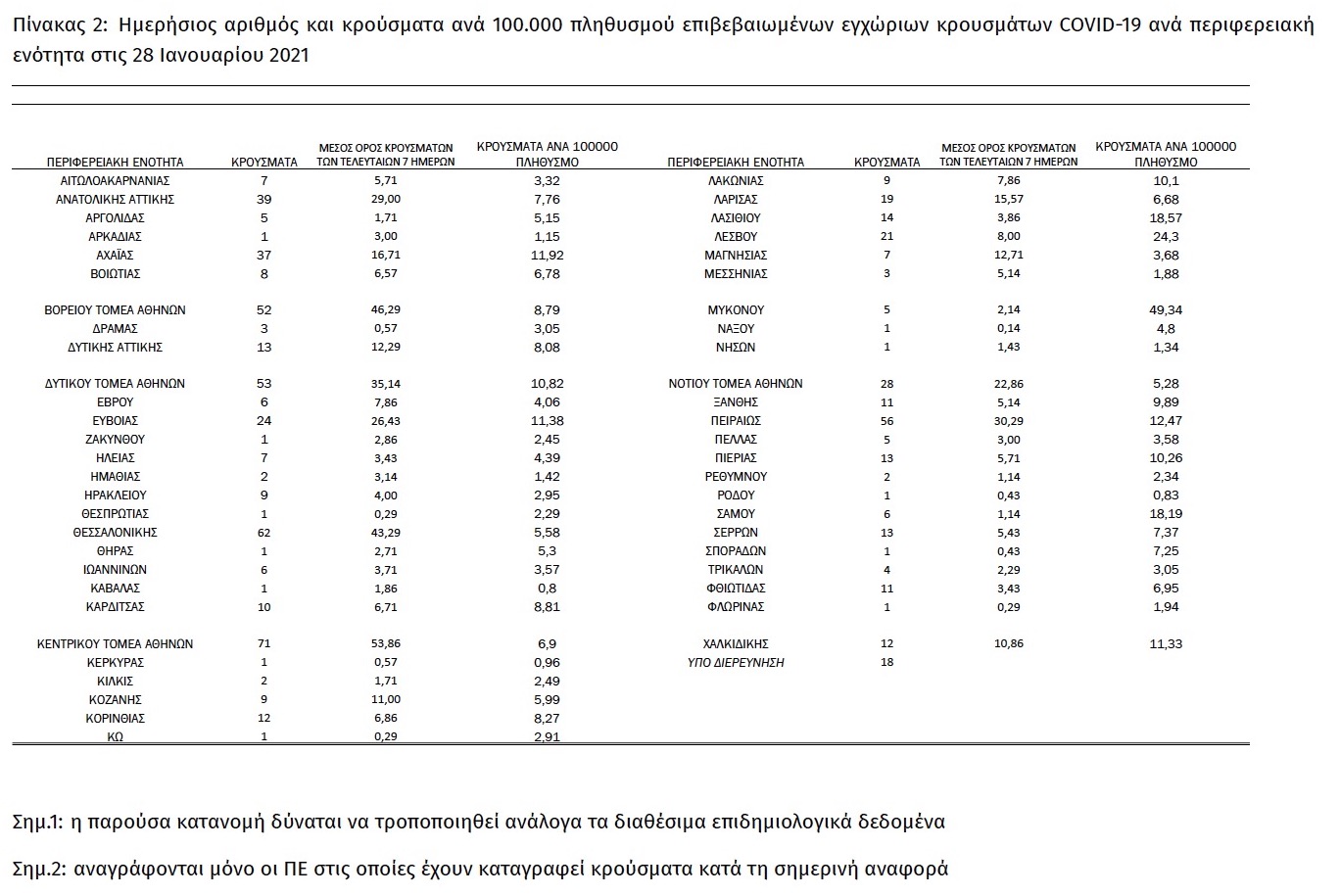 Τέλος, έχουμε 18 νέους θανάτους από τη νόσο COVID-19, φθάνοντας τους 5742 θανάτους συνολικά στη χώρα, εκ των οποίων 3374 (58.8%) άνδρες. Η διάμεση ηλικία των θανόντων συμπολιτών μας ήταν τα 79 έτη και το 95.5% είχε κάποιο υποκείμενο νόσημα ή/και ηλικία 70 ετών και άνω.