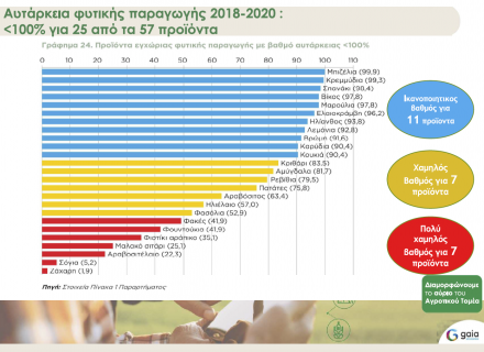 Ικανοποιητικό βαθμό αυτάρκειας έχουμε σε 11 προϊόντα και σε 25, από σύνολο 57 προϊόντων φυτικής προέλευσης που εξέτασε η μελέτη, είμαστε αυτάρκεις.