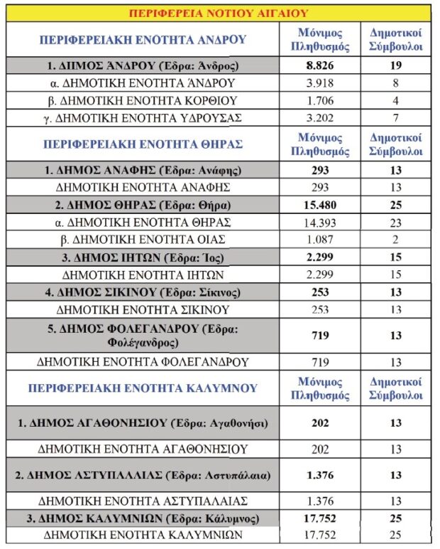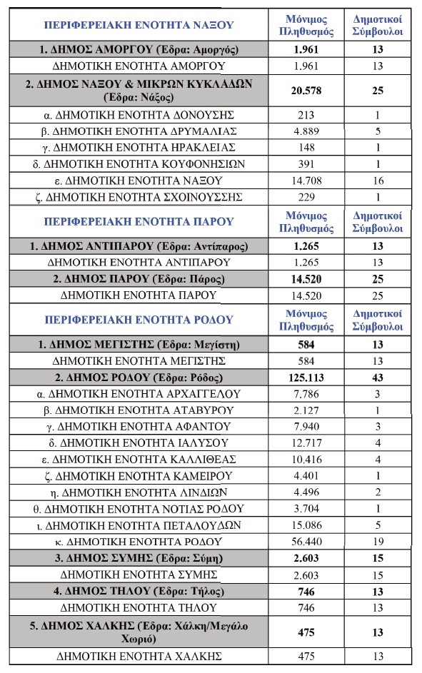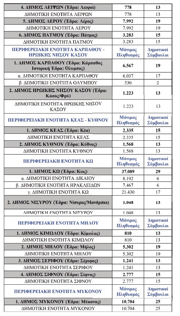 Ειδικότερα, στο παρακάτω έγγραφο θα δείτε πόσοι δημοτικοί σύμβουλοι εκλέγονται ανά δήμο – δημοτική ενότητα, μετά τις αυτοδιοικητικές εκλογές του Οκτωβρίου, με βάση τα επικαιροποιημένα πληθυσμιακά στοιχεία: