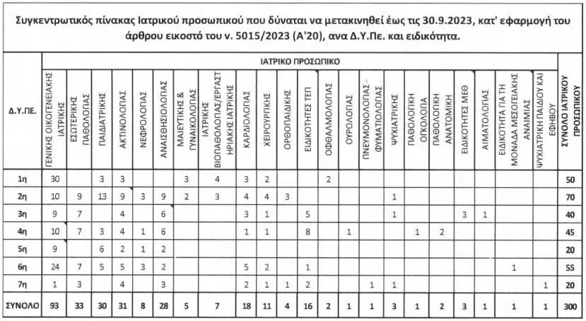 Οι μεγαλύτερες ανάγκες σε γιατρούς εντοπίζονται στις εξής Υγειονομικές Περιφέρειες (ΥΠΕ):