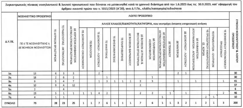 Οι μεγαλύτερες ανάγκες σε νοσηλευτικό και λοιπό προσωπικό εντοπίζονται στις εξής Υγειονομικές Περιφέρειες (ΥΠΕ):