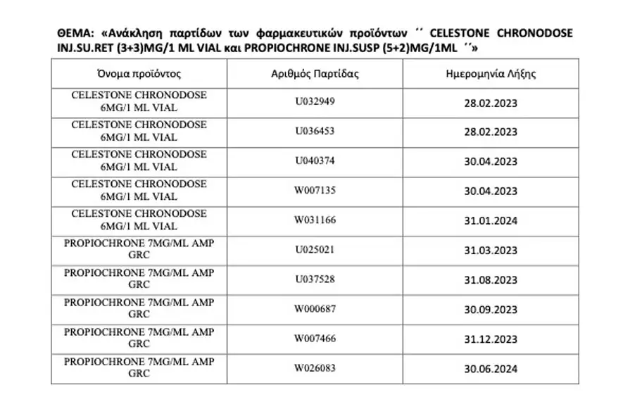 Αναλυτικά τα ανακληθέντα φάρμακα, ο αριθμός παρτίδας και η ημερομηνία λήξης για το καθένα: