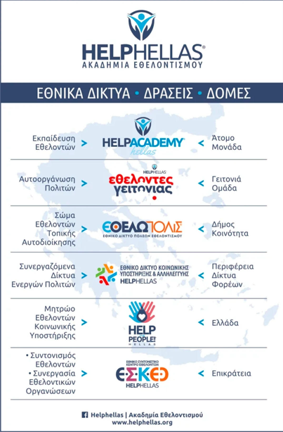 Η Ακαδημία Εθελοντισμού HELPHELLAS φιλοδοξεί να αποτελέσει μια κοινωνική καινοτομία στο χώρο των Οργανώσεων της Κοινωνίας των Πολιτών, με στόχο την θεσμική θωράκιση και ποιοτική αναβάθμιση του εθελοντισμού στη Χώρα μας μέσα από την σύνδεση της Εκπαίδευσης και του Εθελοντισμού.