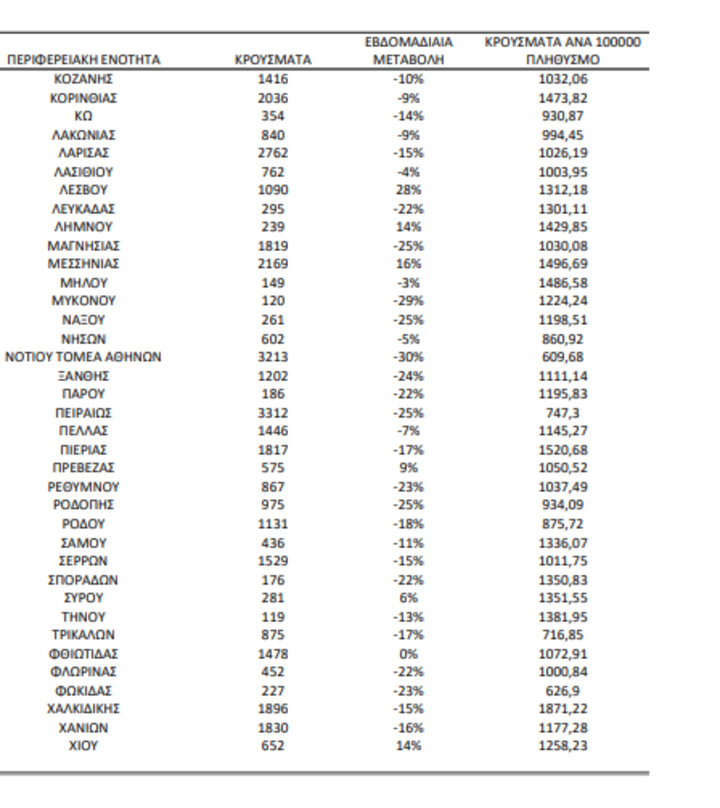 Αναλυτικότερα στην περιφερειακή ενότητα Ρόδου καταγράφηκαν 1.131 νέες μολύνσεις, στην Π.Ε. Κω 354, στην Π.Ε. Καλύμνου 466 και στην Π.Ε. Καρπάθου 56.