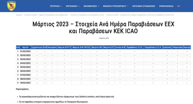 Ολόκληρο τον Μάρτιο, μέχρι στιγμής, είναι μηδενικός. Δεν έχει γίνει ούτε μια! Βασικά είναι μηδενικός από τις 14 Φεβρουαρίου και ένθεν, καθώς από τότε και έως σήμερα δεν έχει υπάρξει η παραμικρή προκλητικότητα από την τουρκική αεροπορία.