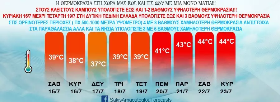 Ειδικότερα εν μέσω της κορύφωσης του καύσωνα, ο Σάκης Αρναούτογλου αναφέρει ότι «για να υπολογίσετε με αρκετή ακρίβεια τη θερμοκρασία στην περιοχή που σας ενδιαφέρει, διαβάστε ΠΡΟΣΕΚΤΙΚΑ την επεξήγηση στο μετεώγραμμα σας παρακαλώ γιατί όπως είναι φυσικό ανάλογα με την περιοχή, το υψόμετρο και την γειτνίαση στη θάλασσα οι θερμοκρασίες θα διαφέρουν!».