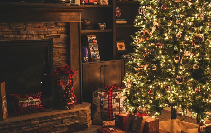 * Στολισμένα σπίτια και δέντρα, παντού.