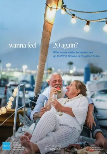 Την επόμενη εβδομάδα θα ξεκινήσει καμπάνια στο Λονδίνο και σε άλλες ευρωπαϊκές πρωτεύουσες με αφίσα «Θέλεις να αισθανθείς ξανά 20 ετών;», η οποία απεικονίζει ένα ηλικιωμένο ζευγάρι πάνω σε ένα ιστιοπλοϊκό να απολαμβάνει το κρασί του και να βρίσκει τη χαμένη νιότη του στην Ελλάδα