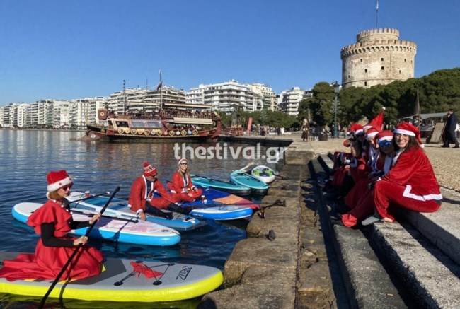 Ειδικότερα, σύμφωνα με τον ιστότοπο Thestival.gr, οι Άγιοι Βασίληδες δεν ήρθαν με έλκηθρο, αλλά κάνοντας SUP στον Θερμαϊκό, κατά μήκος της νέας παραλίας, μοιράζοντας ευχές και χαμόγελα σε μικρούς και μεγάλους που απολάμβαναν τη βόλτα τους με σύμμαχο τον καλό καιρό.