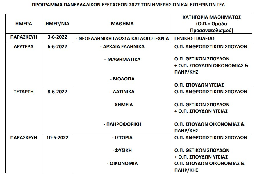 Πανελλαδικές Εξετάσεις Ημερησίων και Εσπερινών (ΓΕΛ):