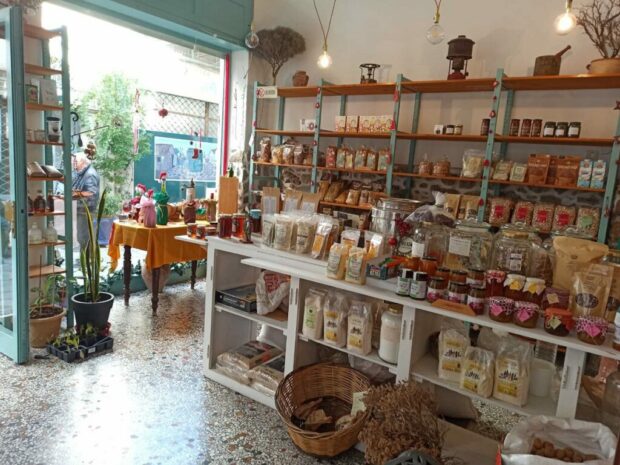 Η πρόθεση της Μαριάννας και του Πέτρου, ήταν από την αρχή ξεκάθαρη σε ότι έχει να κάνει με τον προσανατολισμό του μαγαζιού. «Δεν θέλαμε να δημιουργήσουμε ένα ακόμα κατάστημα με είδη σούπερ μάρκετ. Στόχος μας εξ’ αρχής, ήταν να αναζητήσουμε τις οικοτεχνίες, τους συνεταιρισμούς και τις μικρές τοπικές επιχειρήσεις ανά την Ελλάδα, με παραγωγούς που είχαν νόστιμα και ενδιαφέροντα προϊόντα και που θα μπορούσαν να τοποθετηθούν στα ράφια μας, χωρίς μεσάζοντες. Κοινώς, είχαμε στο νου μας ένα εναλλακτικό παντοπωλείο» μου λέει, λύνοντάς μου την απορία για το πώς προέκυψε η ονομασία.