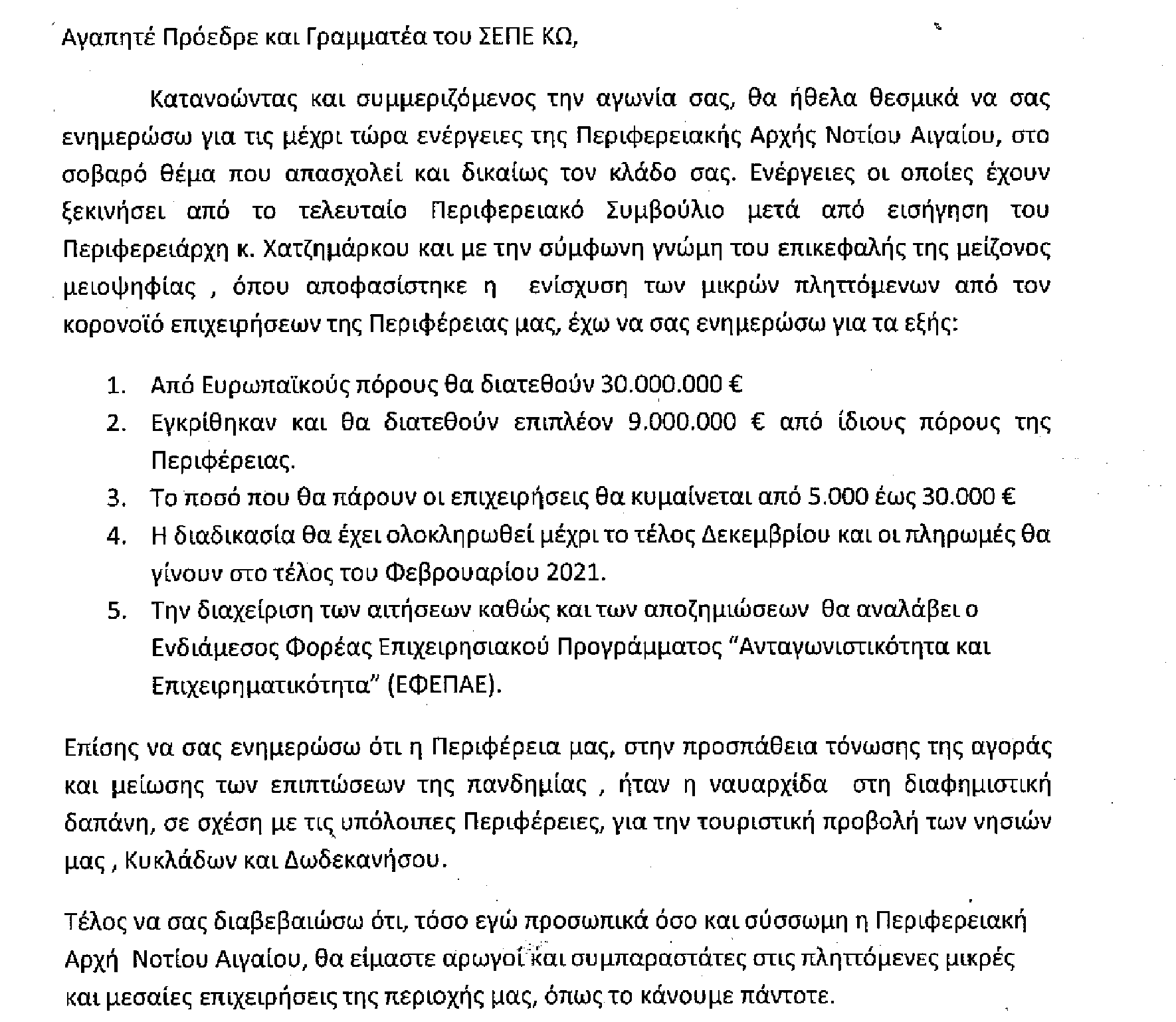 Απάντηση του Επάρχου Κω - Νισύρου στο ΣΕΠΕΚΩ