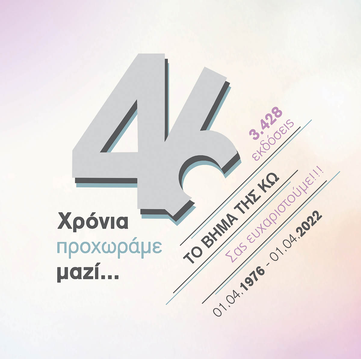 01/04/76 - 01/04/22: 46 ΧΡΟΝΙΑ ΠΡΟΧΩΡΑΜΕ ΜΑΖΙ…