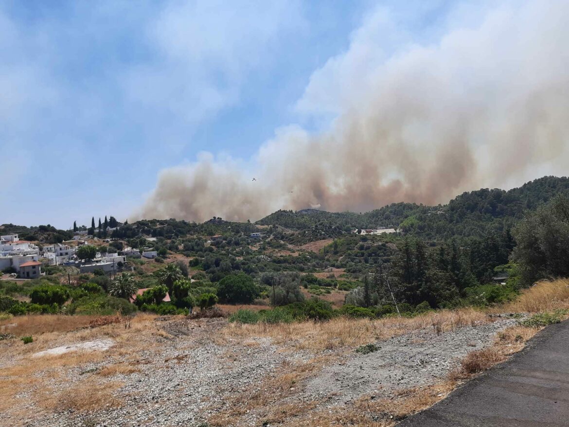 Νωρίτερα είχε σταλθεί μήνυμα 112 από την Πολιτική Προστασία για εκκένωση στην περιοχή Κιοτάρι όπου βρίσκονται και οι παραπάνω ξενοδοχειακές μονάδες. Ανάλογα μήνυμα για εκκένωση έλαβαν στα κινητά τους και οι κάτοικοι των χωριών Λάρδο, Πυλώνα και Ασκληπιείο.